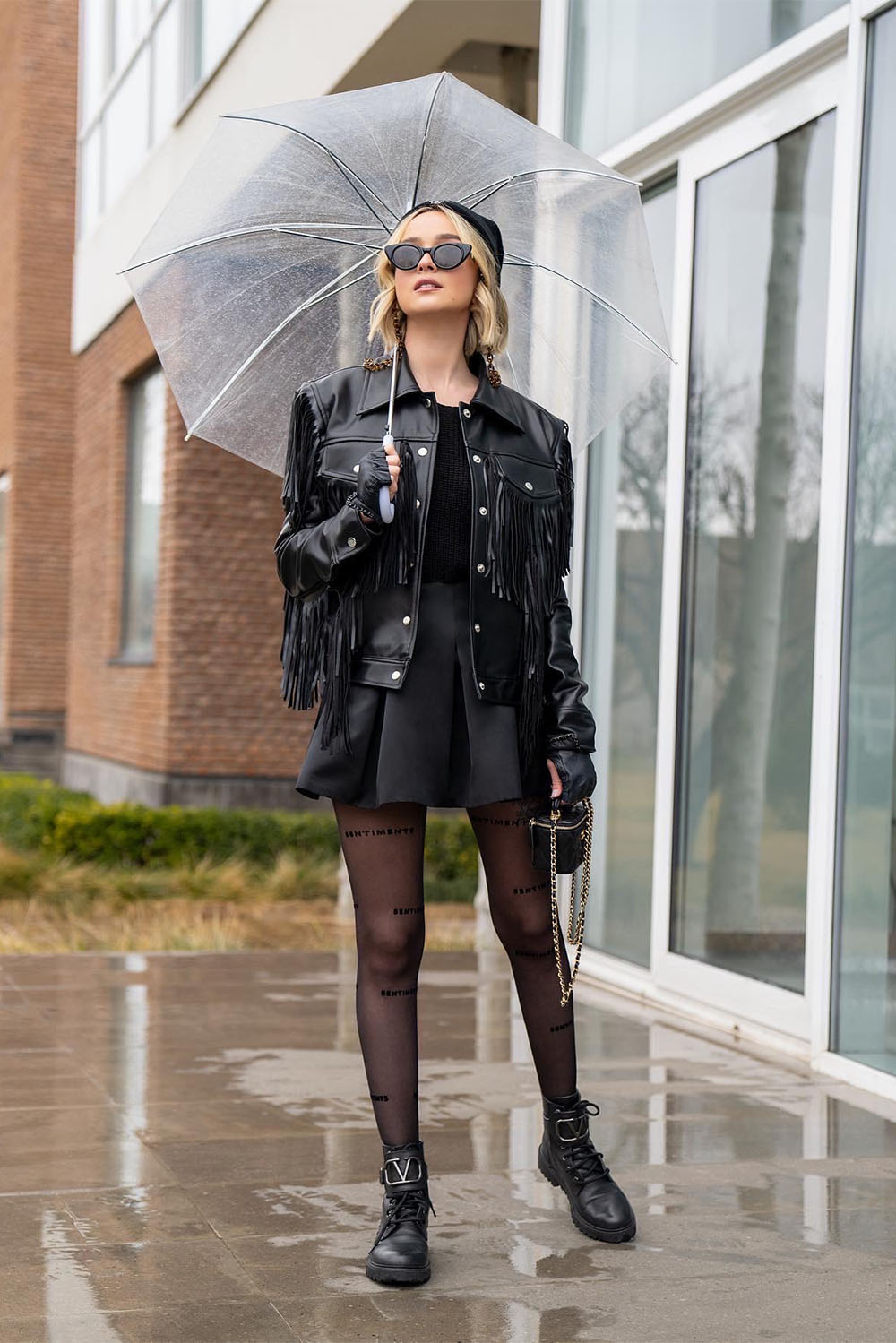 Veste en similicuir avec pompons sur la poche